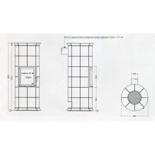 - Высота подключения 1570 мм (верхняя кромка дымовой трубы)