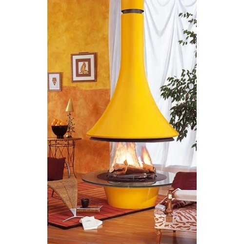Островной дровяной камин с открытым очагом. В 2001 году модель получила приз Janus - награду в области дизайна французского института Institut Francais.