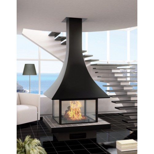 Островной камин также очень удачен тем, что имеет много положительных качеств. Закрытая топка камина JC Bordelet Julietta 985 centrale vitree держи пламя изолированно, тем самым обеспечивает полную безопасность, защищенность пространства комнаты от пламени.