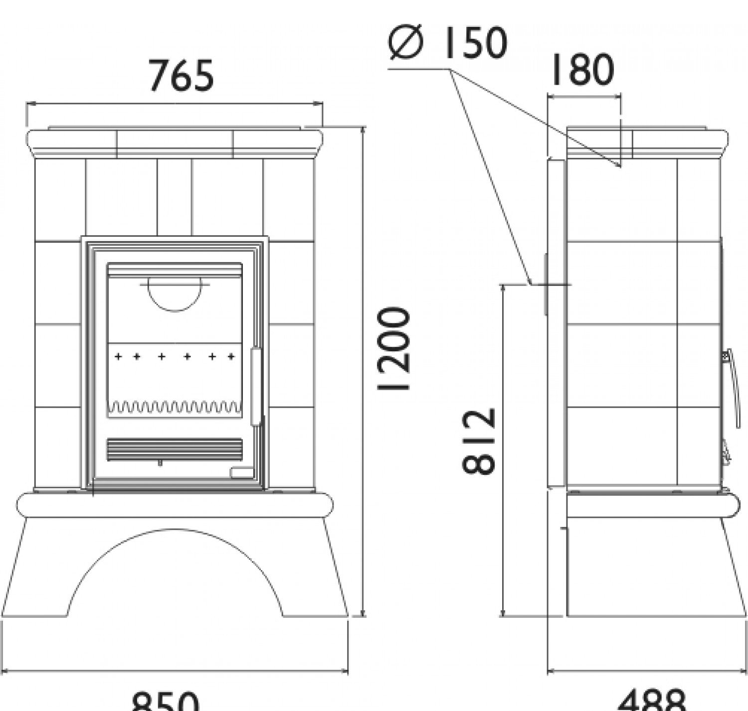 Вставка данной печи комбинированная, выполнена из чугуна и стали. Цветовую гамму кафеля можно подобрать на Ваш вкус: белый, торф или торба. Цоколь печи белый. За час печь в номинальном режиме расходует 2,5 кг сухих дров.