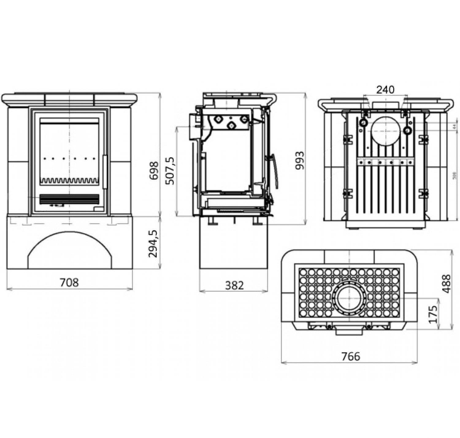 Стекло прямое, выдерживающее нагрев до 800 градусов Цельсия. В качестве финишной облицовки корпуса использовалась керамика глазурованного типа.
