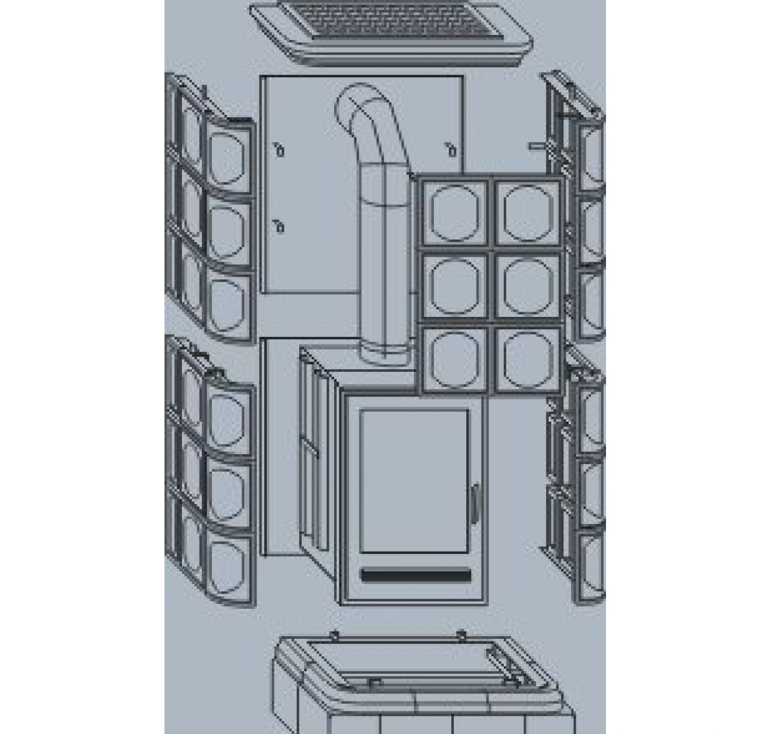 Топка выполнена из стали высокого качества с футеровкой вермикулитом либо из чугуна. Увеличенная площадь кафельной печи будет долго отдавать тепло.