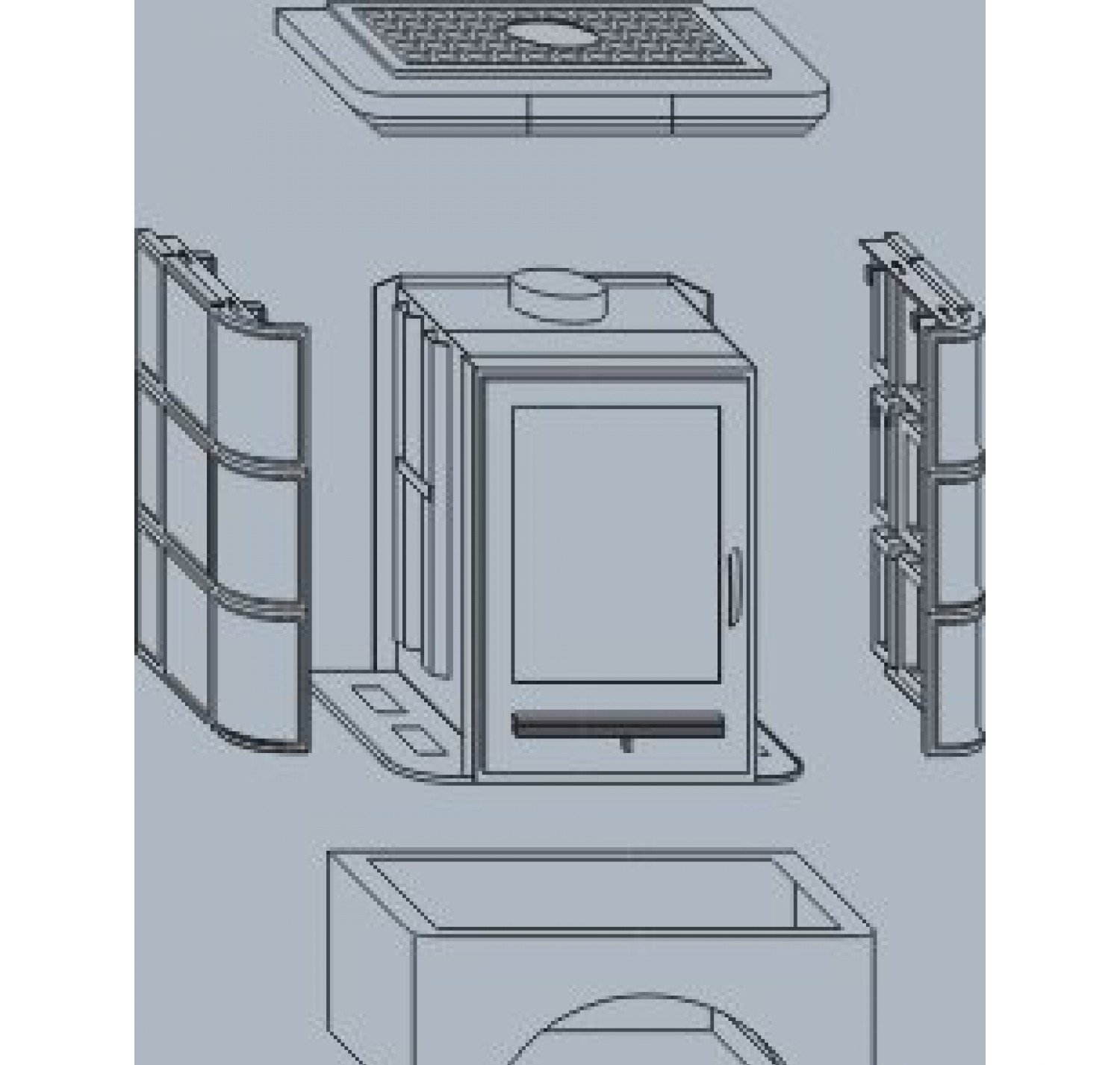 Вставка данной печи комбинированная, выполнена из чугуна и стали. Цветовую гамму кафеля можно подобрать на Ваш вкус: песчаная, зеленая, коричневая, пикассо. Цоколь печи белый. За час печь в номинальном режиме расходует 1,9 кг сухих дров.