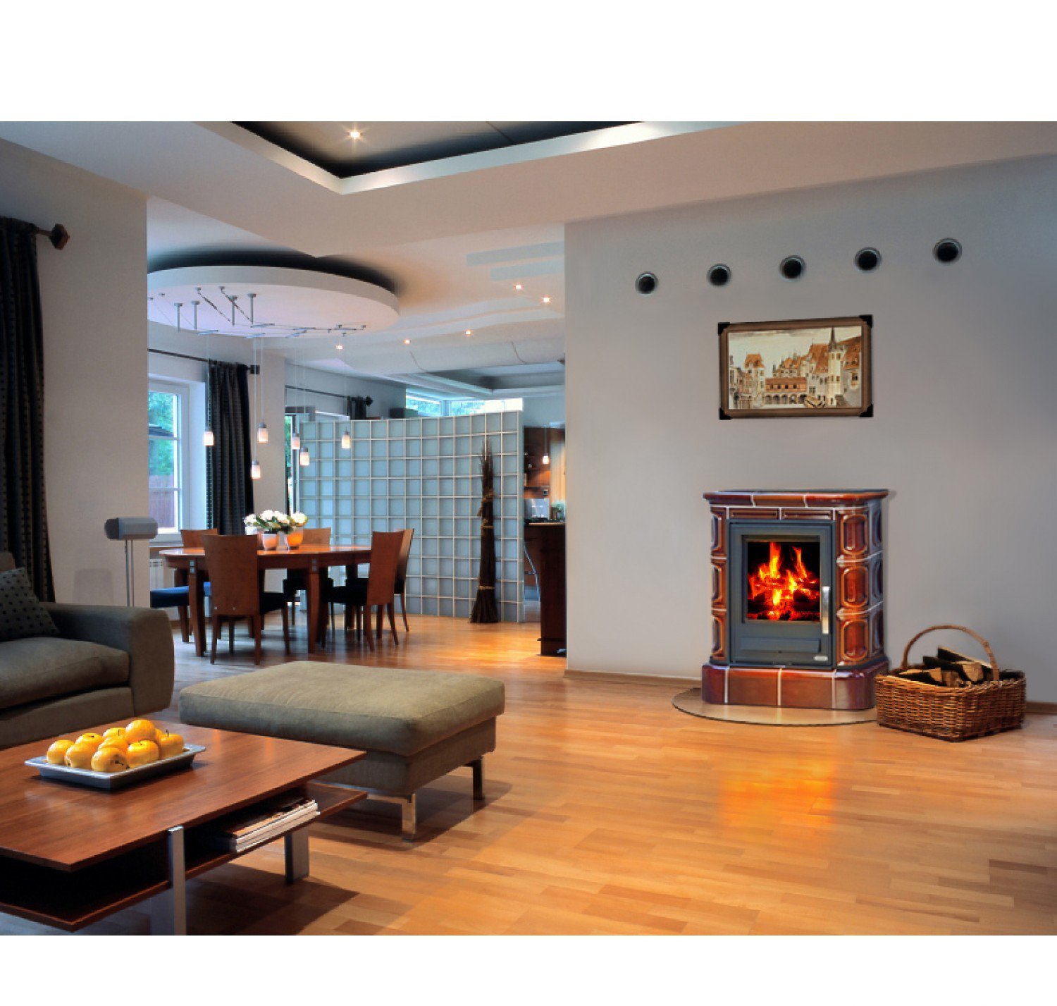 Кафельная печь ABX Marina ориентирована на обогрев помещения и украшение интерьера. Камин Marina весит 245 кг, поэтому его можно монтировать без отдельного фундамента. При сравнительно небольших габаритах Marina обладает системой длительного горения и способна обогреть большие пространства при сжигании небольшого количества топлива. За час печь в номинальном режиме расходует 1,9 кг сухих дров. Облицовка выполнена из печного кафеля, который отдает тепло еще несколько часов, после того как печь протопилась. Топка печи Marina бывает чугунная или комбинированная (сталь+чугун). Выход дымохода в двух вариантах.