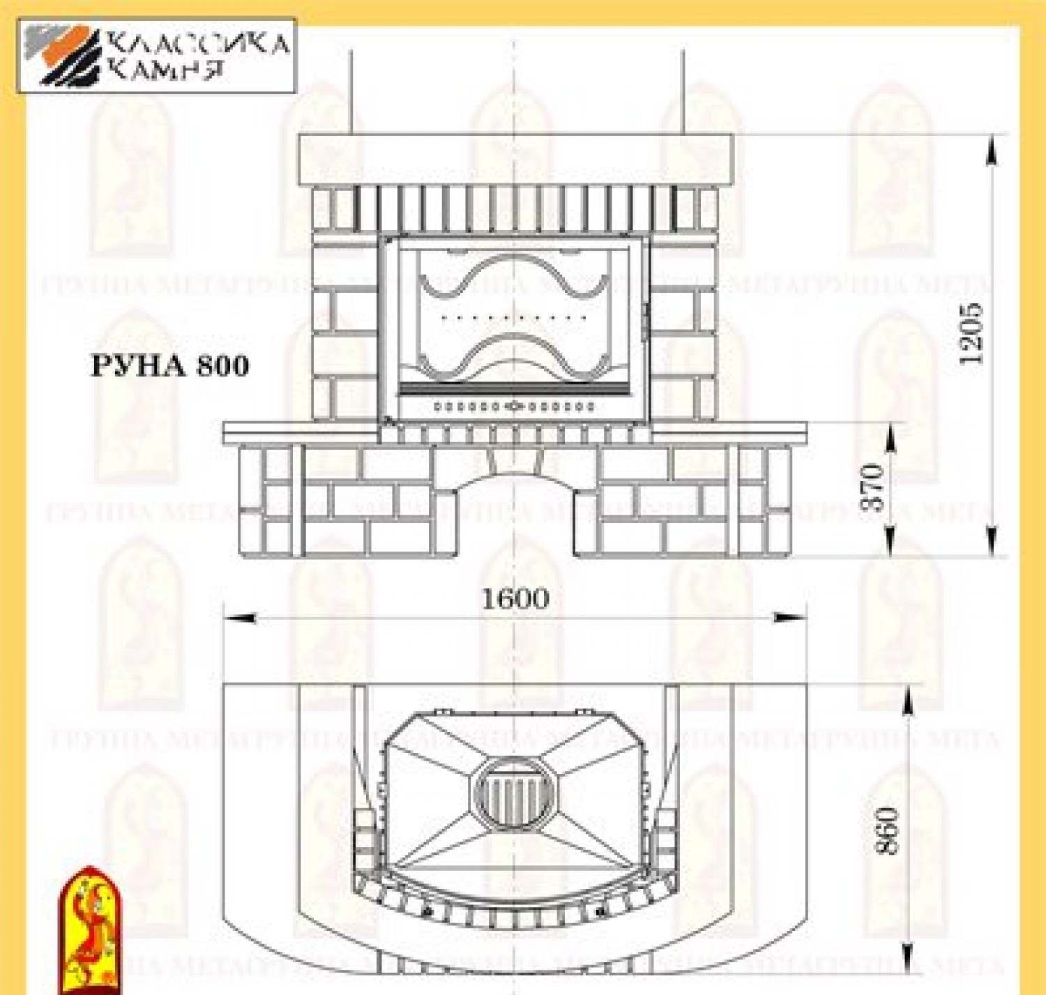 Каминная облицовка Мета РУНА 800 подходит для топки Мета Панорама 800П.