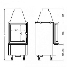 Так же, к данной облицовке, подходят топки других производителей, ширина фасада которых не превышает 692 мм. Топки с подъемным механизмом (открывание дверцы вверх) - не подходят.