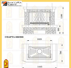 Притопочная и надтопочная часть выполнена из шамота песочно-желтого цвета. Каминная балка, изготовленная из МДФ и шпонированная дубом, послужит отличной полкой для каминных аксессуаров, таких как часы, канделябры, рамки с фотографиями и др.