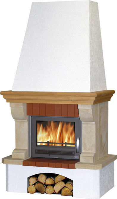 Цена указана за облицовку из натурального камня, каминную топку и термо короб. Дополнительно покупается только дымоходная система.