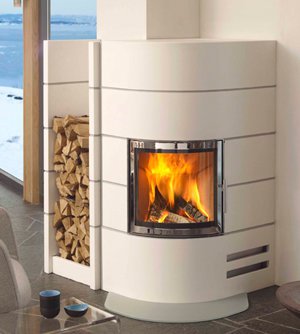Корпус модели имеет современные обтекаемые формы и открытую дровницу. Угловой вариант расположения камина в помещении очень удобен, так как позволяет занимать "мертвую зону" угла и совсем немного полезной площади помещения.