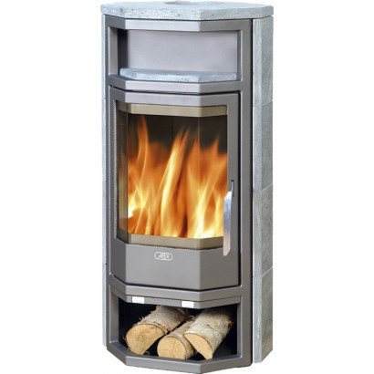 Внизу, под топкой, расположена удобная ниша для хранения дров, а в верхней части печи предусмотрена ниша для разогрева пищи. У этой печи высокий КПД.