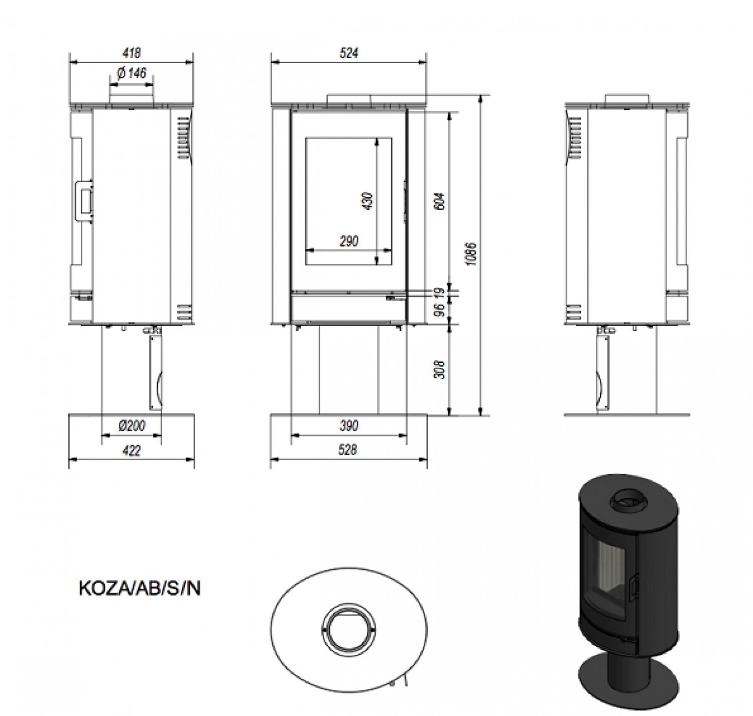 Печь Koza AB/S/N современной цилиндрической формы. Камера сгорания, корпус печи, верхняя плита и дверца изготовлены из стали. Печь имеет верхнее или заднее подключение к дымоходу. Камера сгорания футерована керамикой Acumotte. Дверца с большим панорамным стеклом. Камера под печкой оснащена механизмом «нажмите для открытия» — открывается нажатием. Тройная система подачи воздуха в камеру сгорания: первичный и вторичный воздух, а также воздух, который подаётся на стекло (система чистого стекла). Вся продукция компании Kratki.pl соответствует стандартам BImSchV 2, что гарантирует высокое качество продукции.