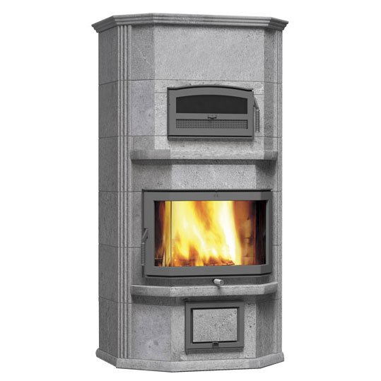 Пристенный печь-камин с задним нижним подключением 2 теплового класса, для больших помещений. С духовкой.