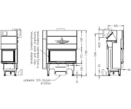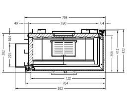 Печь камин с верхним подключением дымохода. Основание и напольная плитка поставляются по дополнительному заказу. Основание увеличивает высоту очага на 7 см.