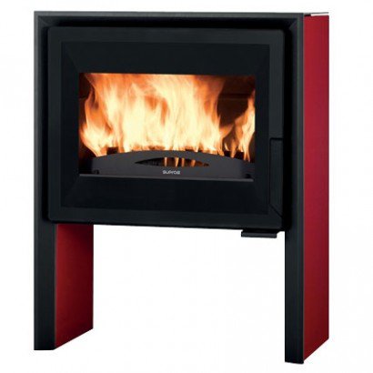 Печь дровяная красного цвета, изготовлена из стали, дверца - из чугуна. Использованы технологии SC2 и РВ50.