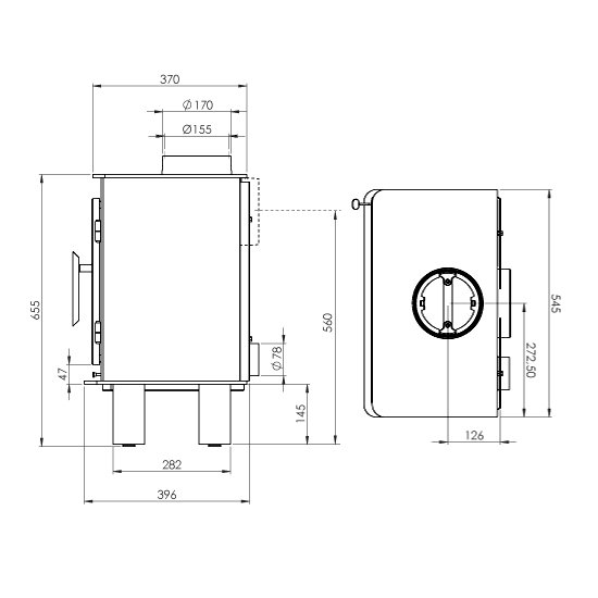 - Диаметр дымохода, (мм) 170
