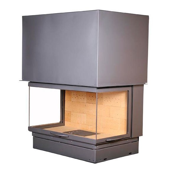 Каминная топка с очагом, облицованным специальным огнеупорным камнем. Топка оснащена регулятором тяги, который автоматически открывается в момент поднятия дверцы. Съемные и поворачивающиеся задвижки, через которые поступает воздух. Выдвижной зольник. Съемные ножки.