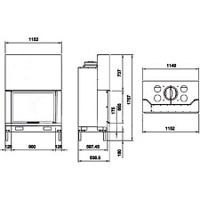Топка оснащена регулятором тяги, который автоматически открывается в момент поднятия дверцы. Съемные и поворачивающиеся задвижки, через которые поступает воздух. Выдвижной зольник. Съемные ножки.