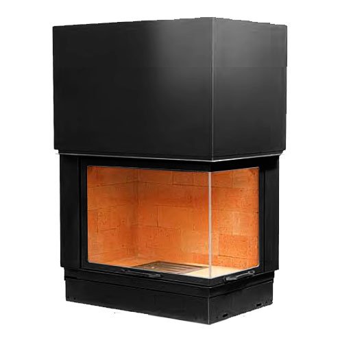 Топка двусторонняя угловая с правым боковым стеклом. Цвет черный. Стекло топки - цельное.
