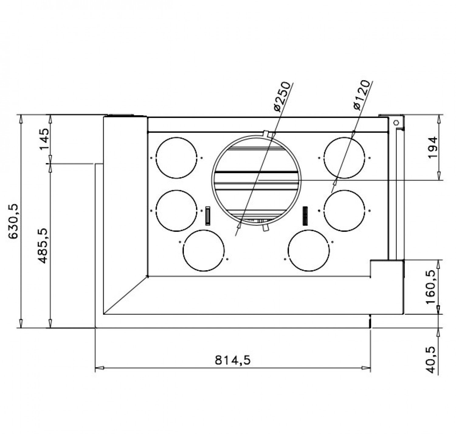 Стальная каминная топка с боковым стеклом. Дверца с подъемом вверх.