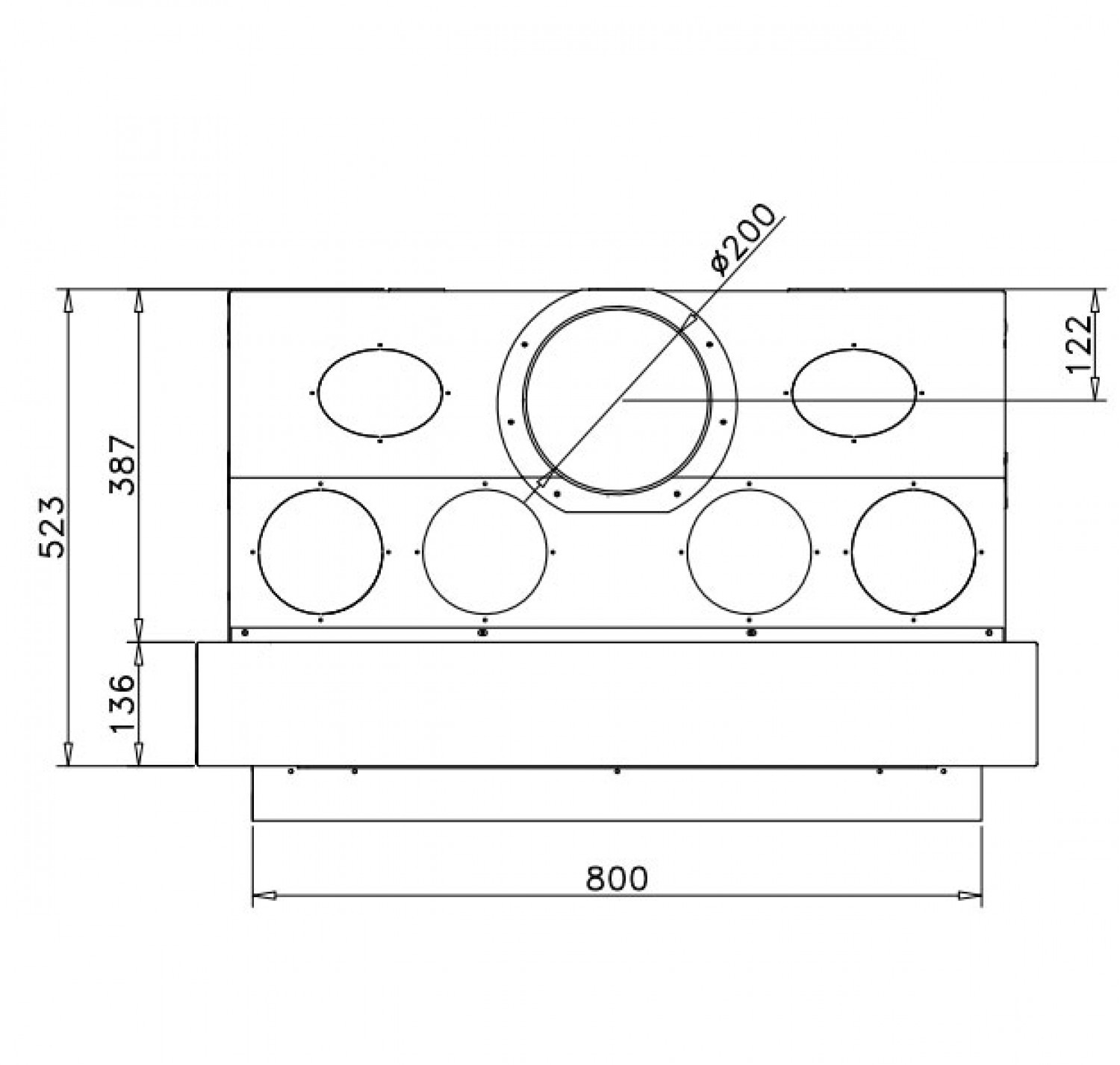 Односторонняя стальная топка с плоским стеклом. Дверца с подьемом вверх.
