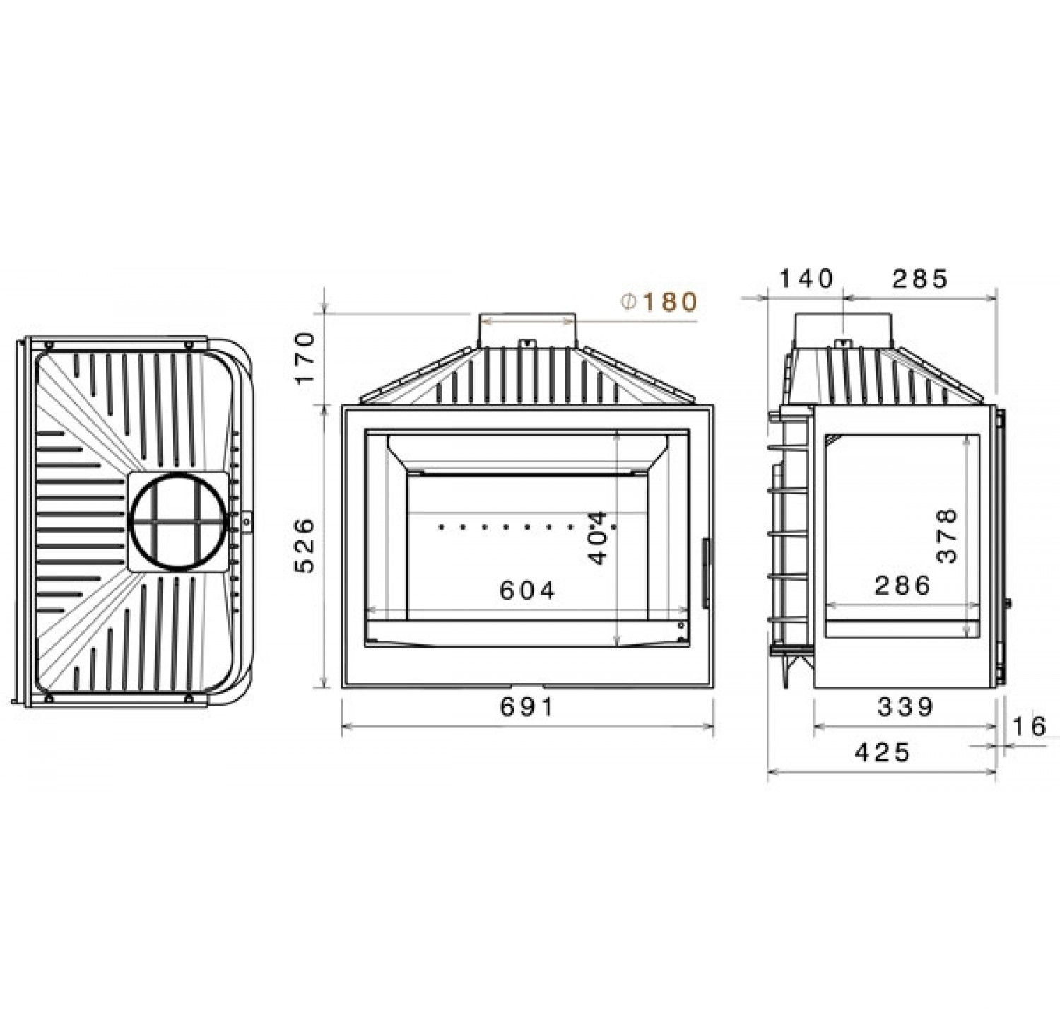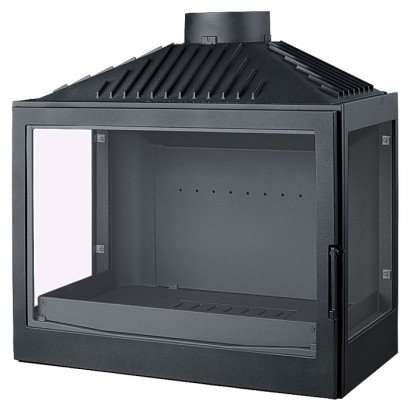 Чугунная каминная топка с дымосборником. С правым и левым боковыми стеклами.