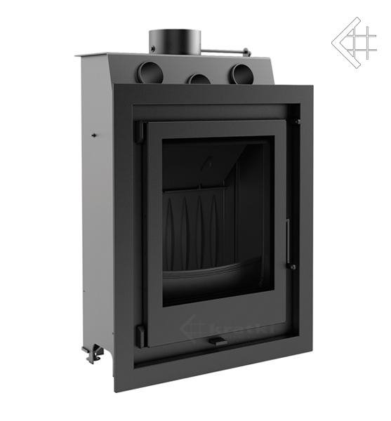 Топка из толстой котловой стали серого цвета. Модель топки высокая. Дверца открывается вбок. Огнеупорное стекло "Robax" выдерживает температуру до 800оС. Эта дровяная топка рассчитана на отопления помещения площадью 120-140м2. Внутренние части топочной камеры чугунные, с декоративными элементами.