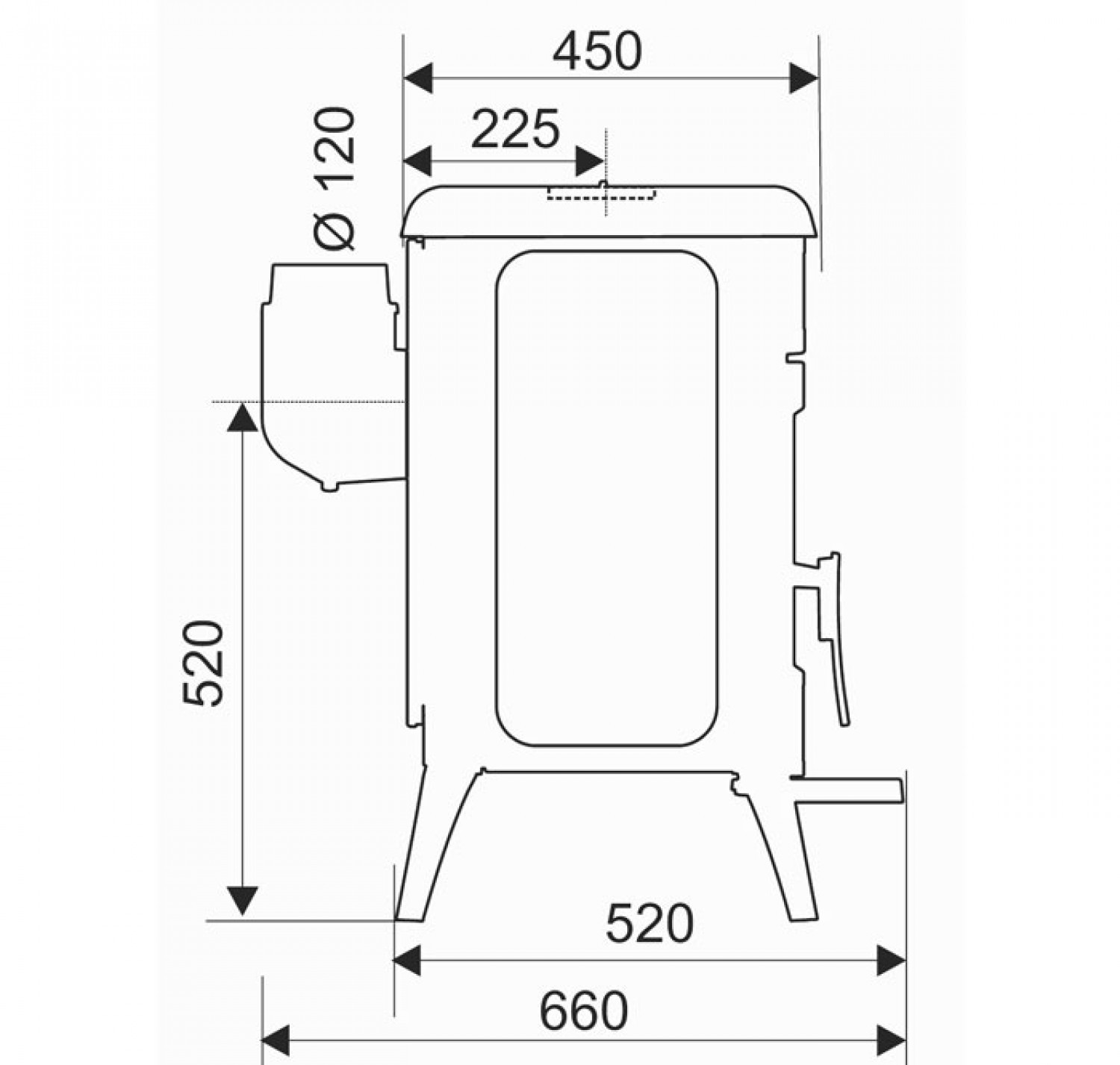 - Задний защитный экран из стали, для установки печи ближе к стене