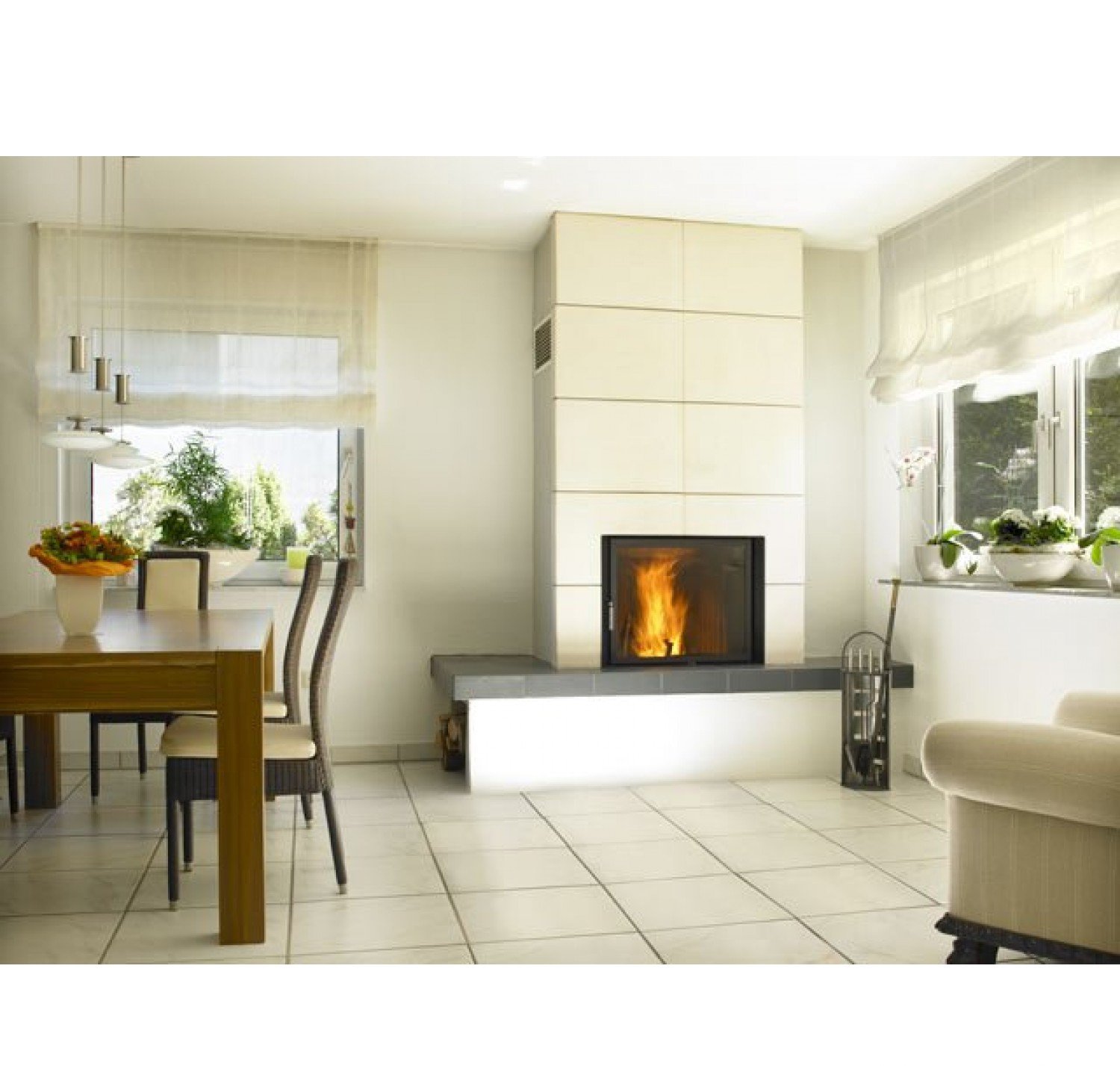- установка дровяного камина довольно сложна и занимает много времени сама по себе, не говоря уже о попытке вписать такой камин в готовый интерьер; - устройству дымохода следует уделить особое внимание, так как при ошибках в конструкции камин может начать дымить внутрь помещения; - необходимость установки дымохода сильно усложняет процесс размещения камина в городской квартире, особенно, если квартира располагается не на последнем этаже; - необходимо заранее продумать, где будут храниться дрова; - нужно помнить, что при использовании для топки дров потребуется постоянная чистка дымохода от золы;