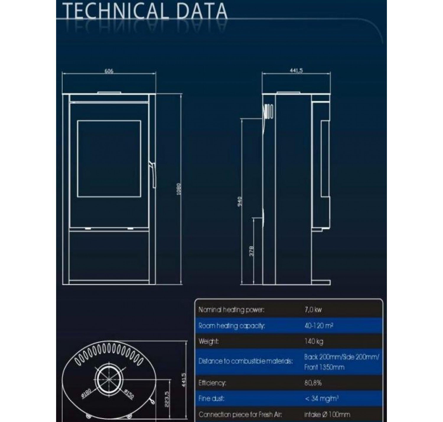 - Диаметр дымохода, (мм) 150 мм.