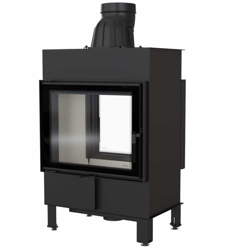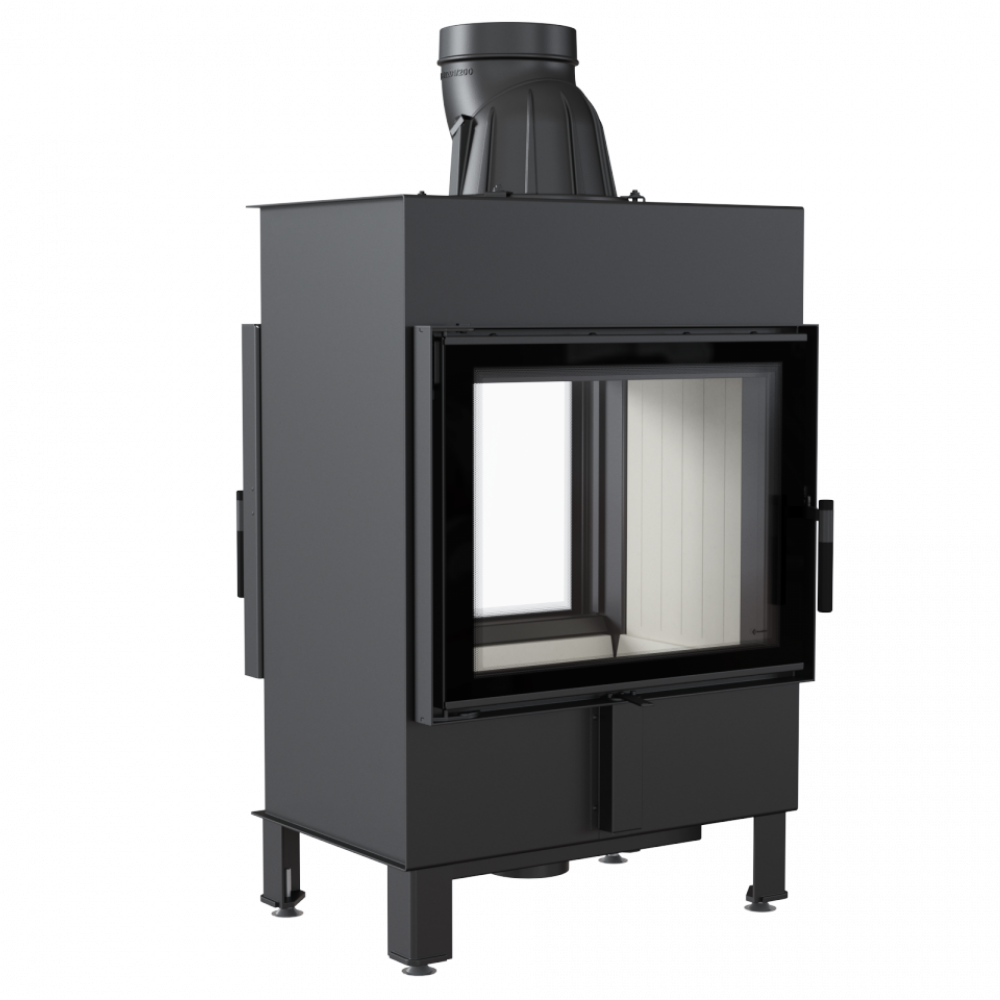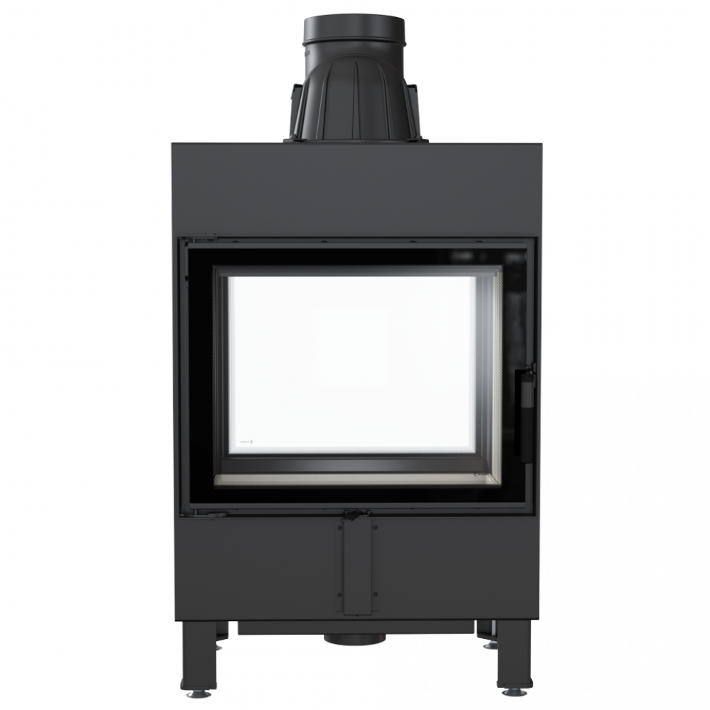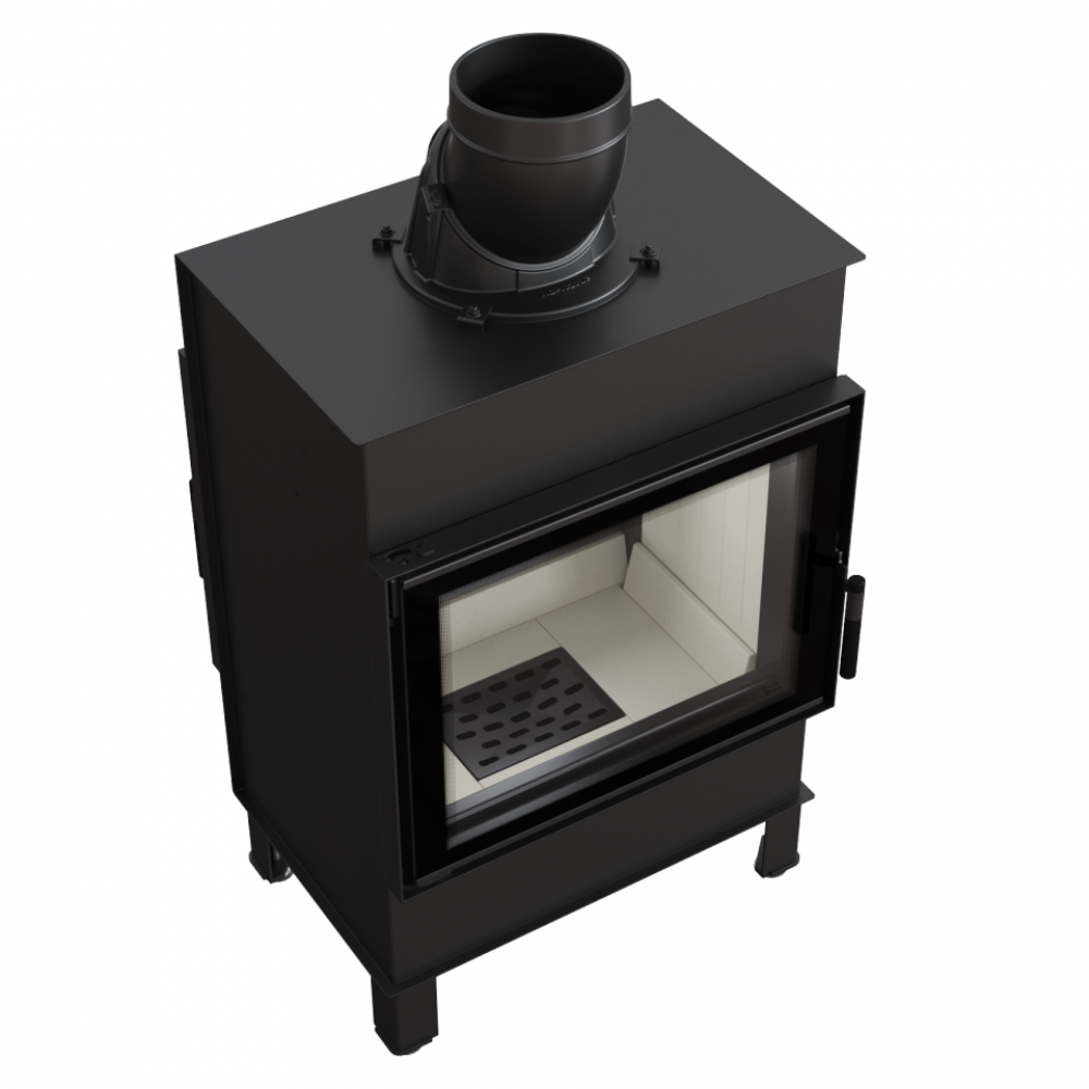 - Модель оснащена подвижным дымоходным отверстием, так что во время монтажа нет необходимости покупать дополнительные колена. Можно легко подобрать угол подключения топки к каминной инсталляции.
