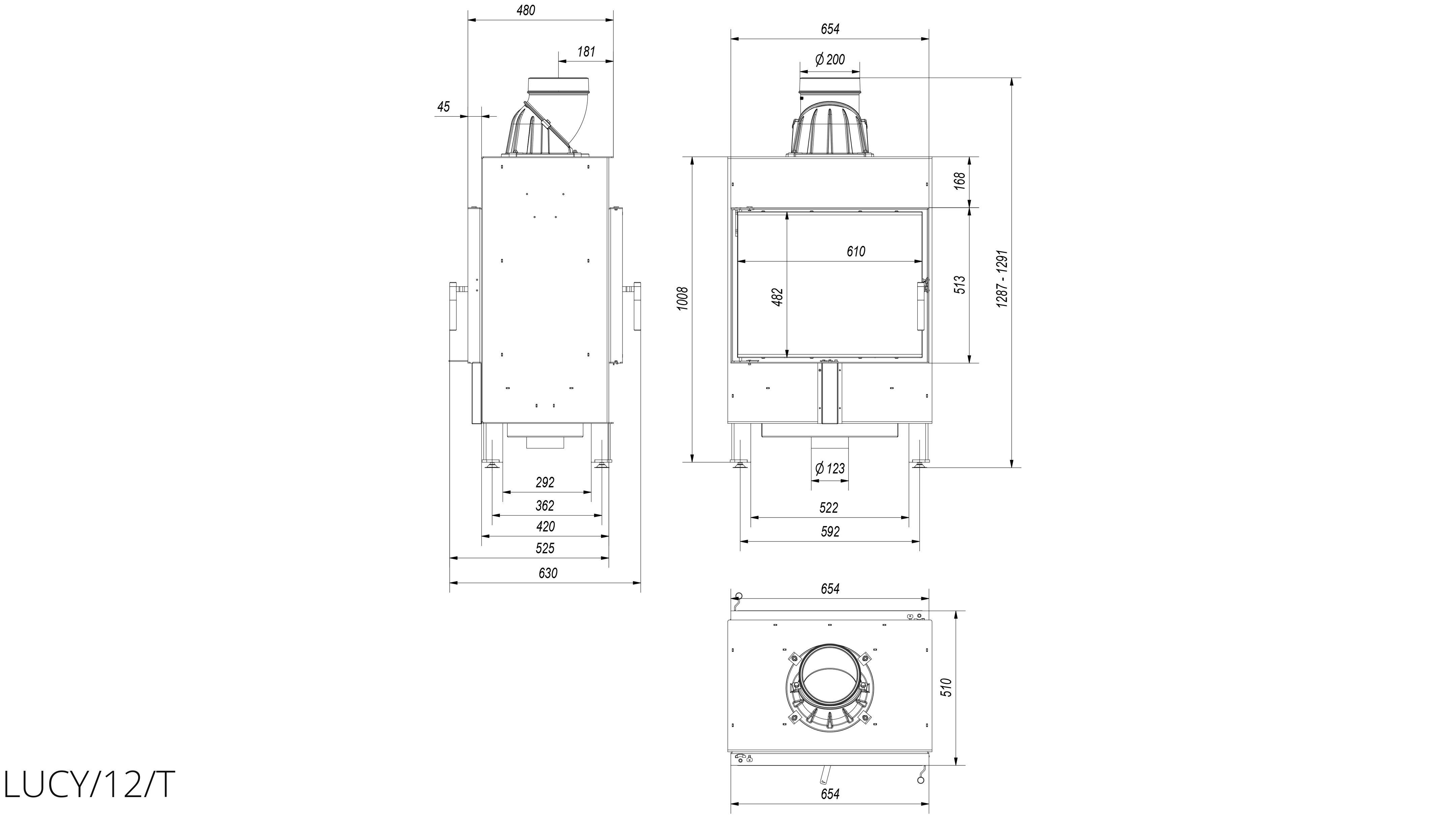 Каминная топка Kratki Lucy/12/T (туннельная) с современной панорамной формой и нетипичным созерцанием огня благодаря стеклу спереди и сзади. Современные технологии, применяемые в камине, гарантируют экономию энергии и делают работу и чистку устройства беспроблемными.