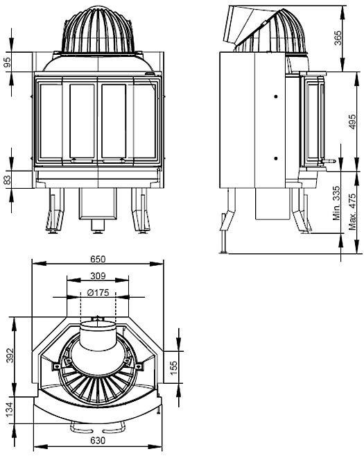 - Диаметр дымохода, (мм) 175