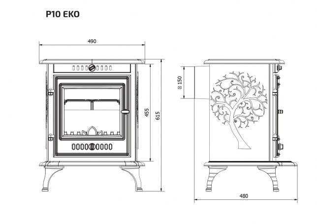 • Чугунная печь Kaw-Met P10 выгодно отличается более точной регулировкой подачи воздуха через нижнюю часть дверцы под колосниковую решетку. Открыв ее на максимум, вы подаете к дровам оптимальное количество воздуха для быстрого розжига.