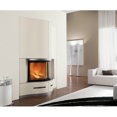 Встроенный дровяной камин с ярким дизайном. Облицовка из майолики ручной работы доступна в двух вариантах цвета. Кожух стальной под покраску или медный. Дровяная топка HT 760T.