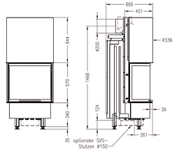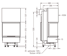 Компактная облицовка с боковыми панелями из майолики и закругленная фронтальная панель с изготовленным вручную декоративным барельефом доступны в широком ассортименте цветов. Cтальная рамка с отделкой из черной эмали (на фотографии изображена версия Terra Cotta, дровяная топка 555T SL с закругленной панелью из керамического стекла).