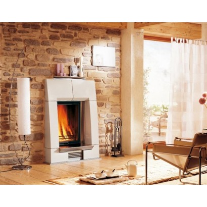 На фото представлена модель в цвете Neve с профилем из нержавеющей стали, с дровяной топкой HT 650.