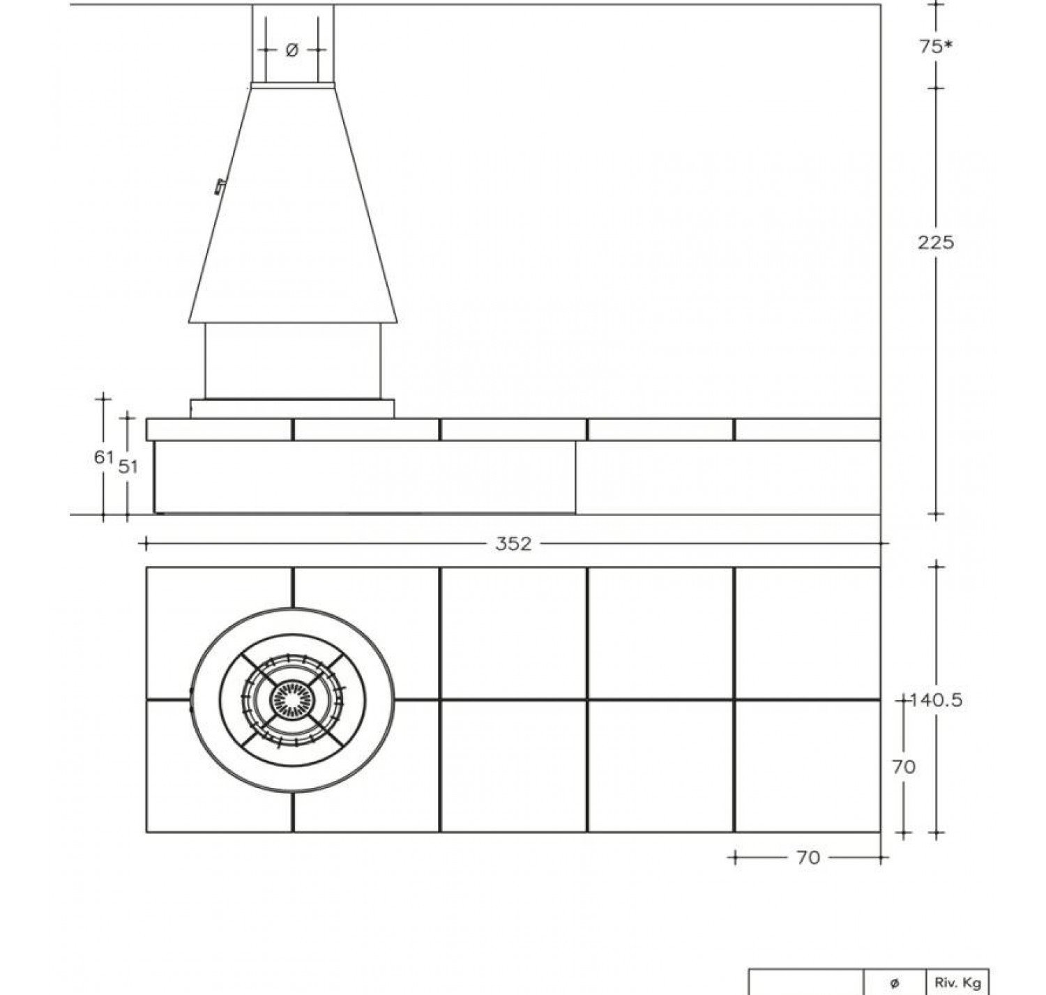 Основание изготовлено из больших панелей из майолики. Опора основания в цвете на выбор. Майолика ручной работы может быть изготовлена в цвете на ваш вкус из палитры Piazzetta. Обрамление и кожух из стали с отделкой из черной или белой эмали. Камин оснащен эксклюзивным электронным механизмом подъема и опускания переднего круглого стекла. На фотографии изображена модель из майолики Ardesia, дровяная топка M360 T.