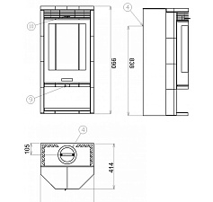 | Чугунный дымосборник Упрощённое соединение с дымоходом 0-90° | Колосниковая решетка Удобная ручка для поднятия решётки, не нужен специальный ключ | Регулятор подачи воздуха Нет необходимости в ключе для регулировки подачи воздуха - нет опасности поцарапать топку | Адаптер приточного воздуха Возможность внешней подачи воздуха на горение из подвала, из соседнего помещения или с улицы. Диаметр патрубка 125 мм. |