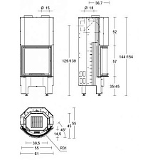 Топка: Schmid Sonderanfertigung с боковой дверцей, имеющей открытие в сторону. (Диаметр дверцы ? 550 мм. Номинальная мощность 7 кВт. Диаметр дымохода ? 180 мм)