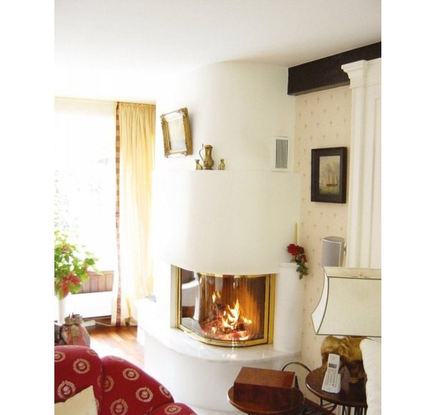 Общепринятые угловые топки чаще всего имеют прямой угол 90 градусов, каминная топка Spartherm Varia 2LRh обладательница полукруглого угла.Подобный внешний вид топки гарантирует ее идеальное расположение в каминной облицовке имеющей овальные , закругленные формы. Каминная дверца топки открывается вертикально и вбок. Вариативность отделки рамки каминной дверки позволяет удачно вписать ее в облицовки абсолютно различных стилей.