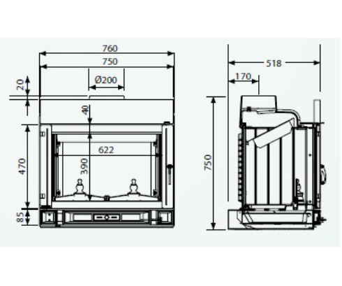 Система «чистое стекло» - технология, которая позволяет стеклу камина долгое время оставаться чистым и не коптиться. Также топка оснащена регулировкой подачи воздуха на горение и шиберной заслонкой с автоматическим открыванием(при открывании дверцы, шиберная заслонка открывается автоматически, данное преимущество позволяет максимально ограничить проникновение дымовых газов в комнату).