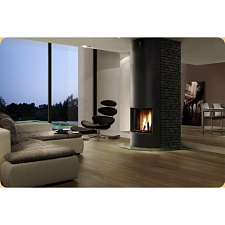 Топка Gable Lateral 900 - топка с угловым скругленным стеклом. Каркас топки выполнен из легированной стали. Очаговая зона выложена высокопрочным огнеупорным кирпичом со швами. Ширина очага 770 мм, глубина очага 367 мм. Высота видимой части пламени 460 мм. Очаг выложен маленькими кирпичными блоками со швами. Размер блока 55х220 мм. Подъемная ручка двери изогнутая 12 см.