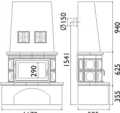 - Диаметр дымохода, (мм) 200 мм.