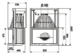 Топка Lateral 900 выполнена из легированной стали.Ширина очага 770 мм, глубина очага 390 мм. Высота видимой части пламени 564 мм. Очаг выложен кирпичными блоками со швами. Размер блока 110х220 мм. Подъемная ручка двери прямая 12 см.