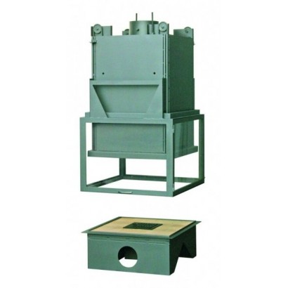 Топка предназначена для установки только в центре комнаты, оснащена подъемным механизмом, с помощью него все четыре стекла поднимаются вверх. Две противоположных стекла открываются вбок для удобства чистки камина. Корпус топки выполнен из легированной стали. Для установки топки необходимо дополнительно заказывать систему подвешивания. В зависимости от ситуации установки необходимо выбрать подходящий вариант подвешивания топки исходя из высоты помещения и верхней фиксации крепления. Очаговая зона основания выложена высокопрочным огнеупорным кирпичом.