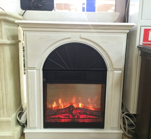 Под аркой совершенно естественно разместился широкий электроочаг в сдержанной черной рамке. Широко развернутое зеркало камина позволяет хорошо видеть топку, в которой наблюдается прекрасно сделанная дизайнерами, иллюзия горящих дров. Прекрасно сделанный муляж горящих дров, светодиодные лампы создающие эффект тлеющих угольков, достоверная картинка колеблющегося пламени, все это рождает ощущение живого огня. А тепла очагу добавляет мощный обогреватель 2.0 кВт, который работает в двух режимах обогрева 1.0 и 2.0 кВт. Электроочаг может работать в декоративном режиме, без включенного обогревателя.