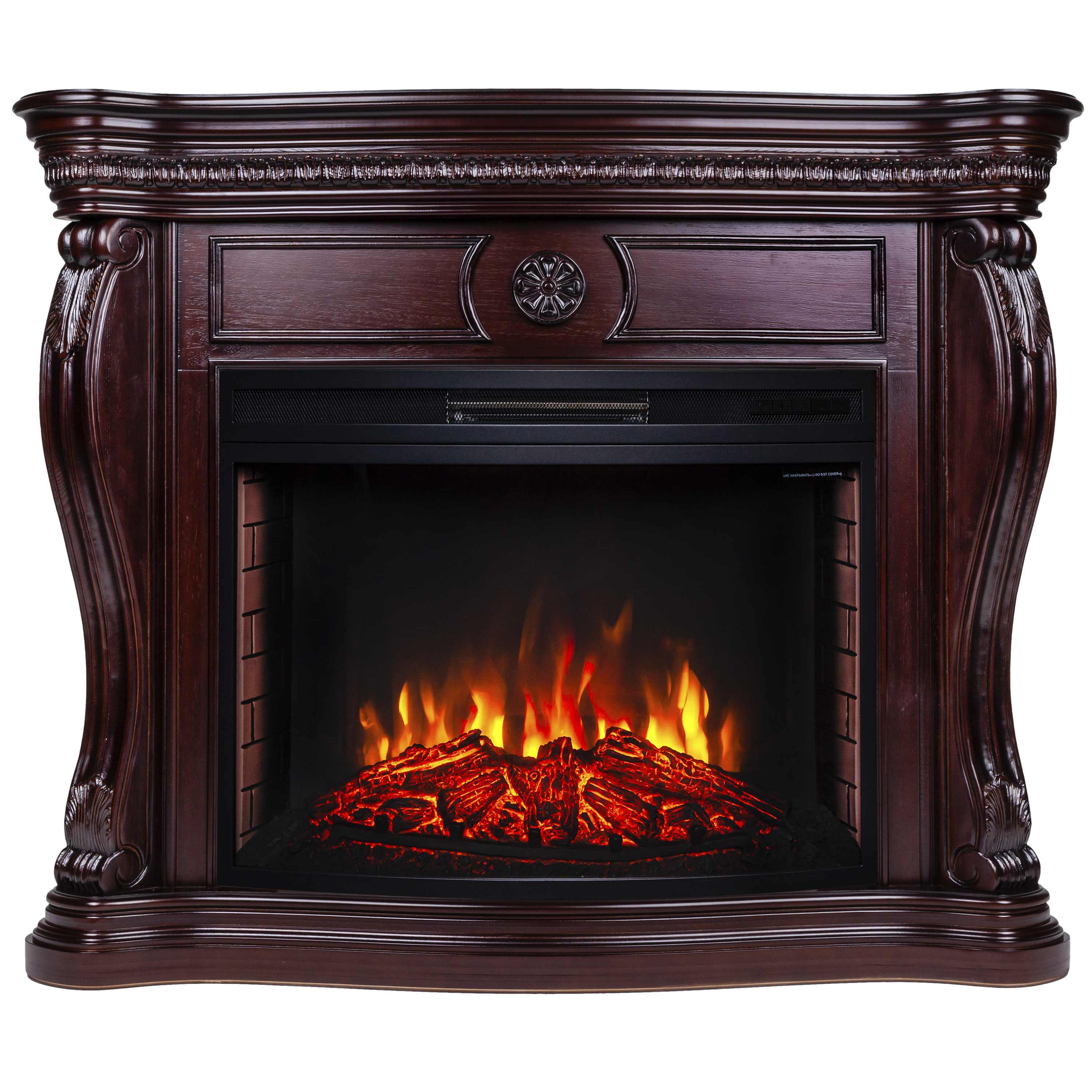 - Имеет эффект пламени последнего поколения на светодиодах и инфракрасный обогрев. Великолепно выполненный муляж дров расположен за эффектным панорамным стеклом.