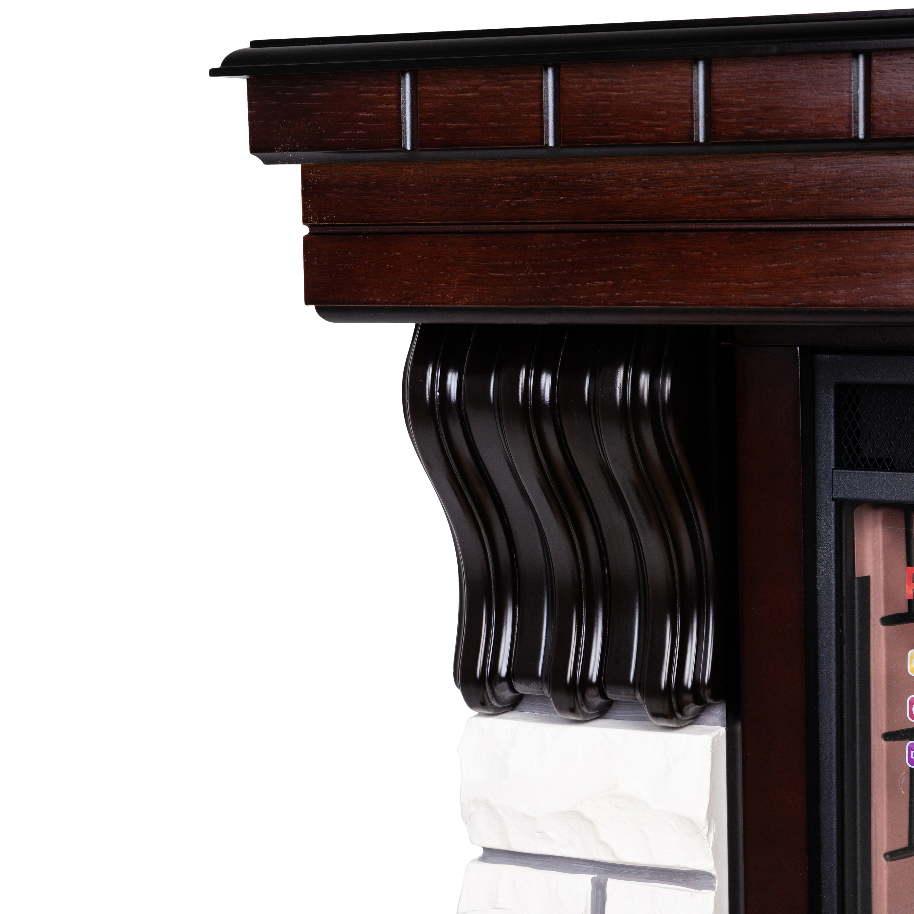 - Изготовлен из искусственного камня и МДФ, покрытого шпоном, - прочного, надежного и стойкого к любым внешним воздействиям материала. Сочетание светлого камня и дерева, декоративная фрезеровка. Дизайн дополнен выемкой для хранения дров в основании обрамления. С массивной каминной полкой.