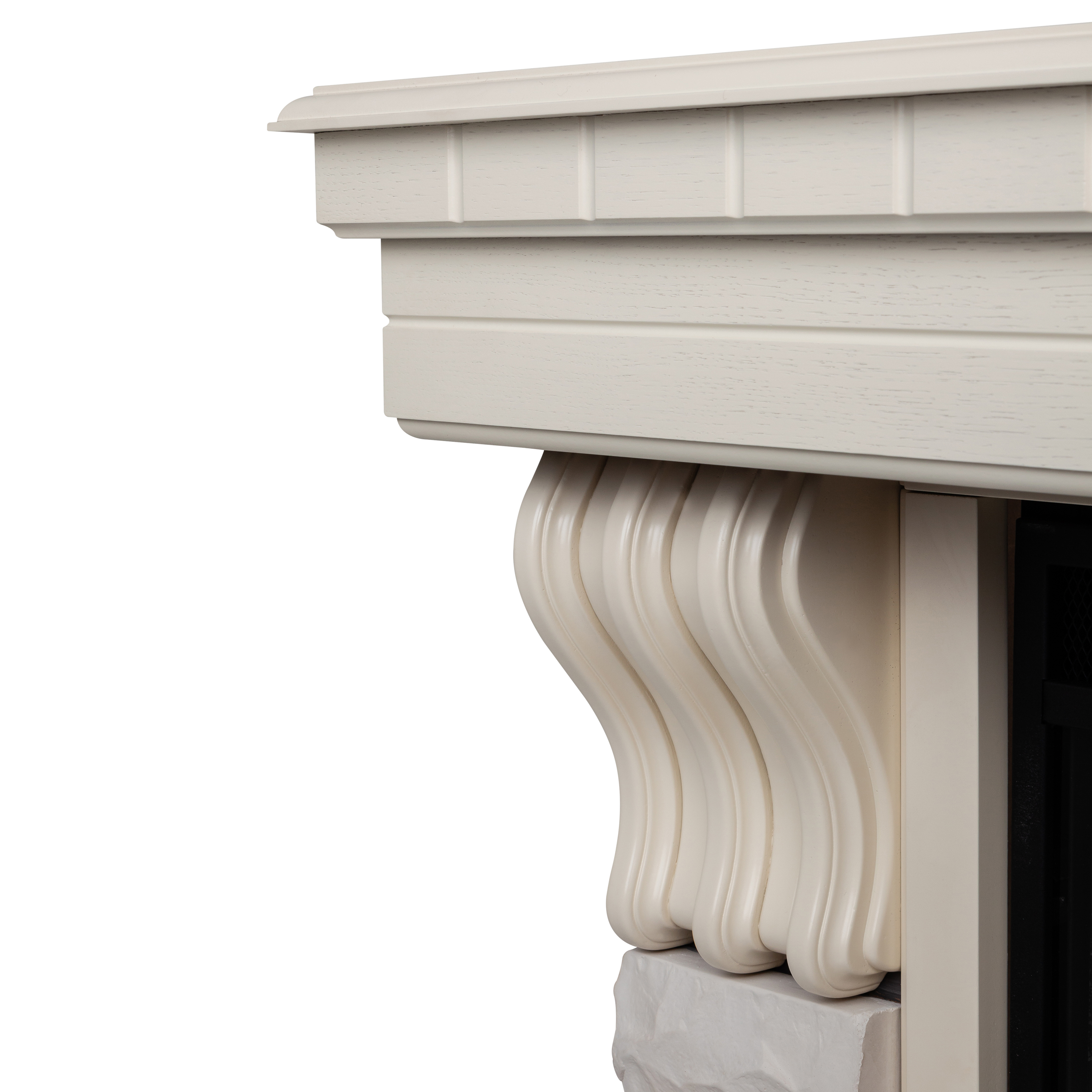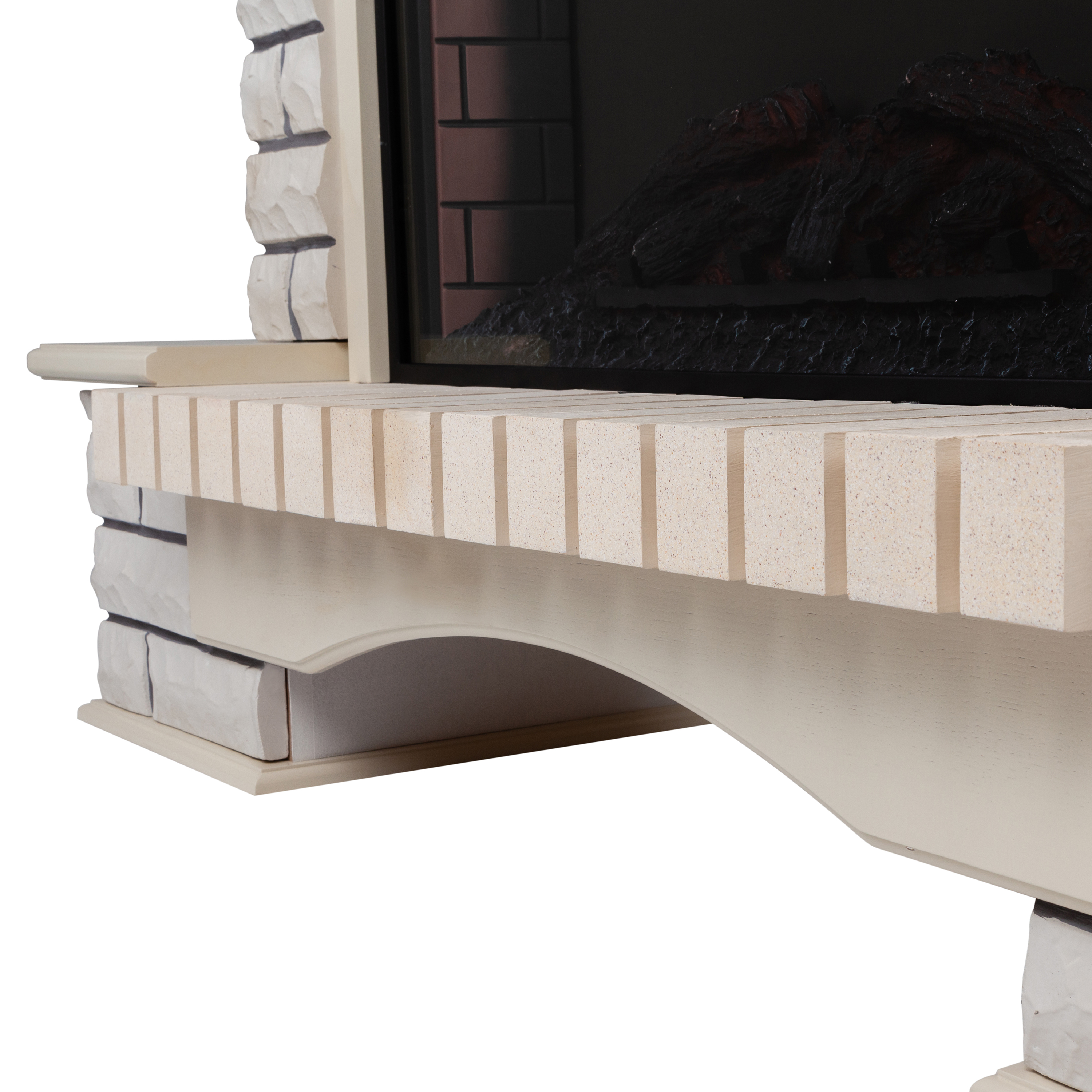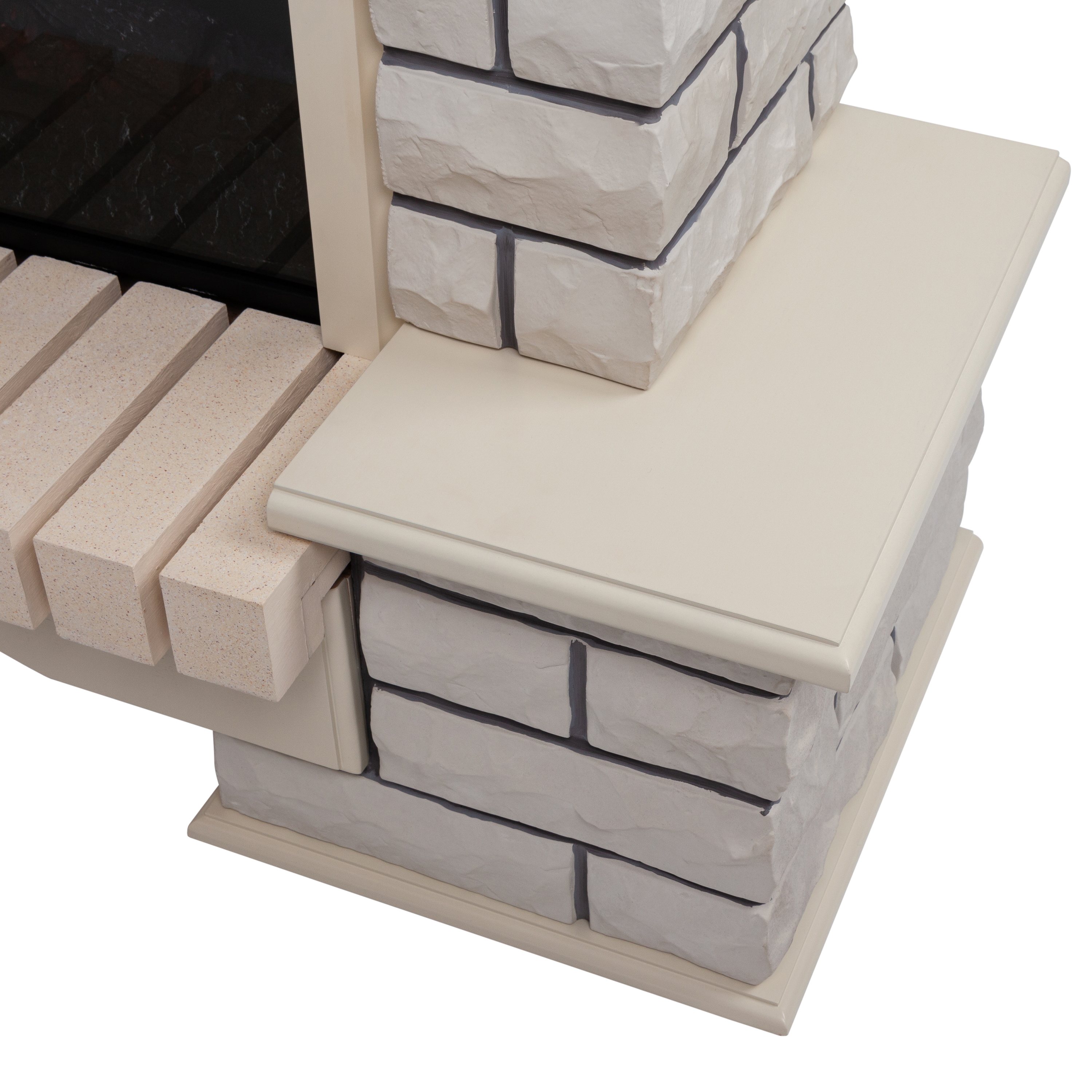 - Изготовлен из искусственного камня и МДФ, покрытого шпоном, - прочного, надежного и стойкого к любым внешним воздействиям материала. Сочетание светлого камня и дерева, декоративная фрезеровка. Дизайн дополнен выемкой для хранения дров в основании обрамления. С массивной каминной полкой.