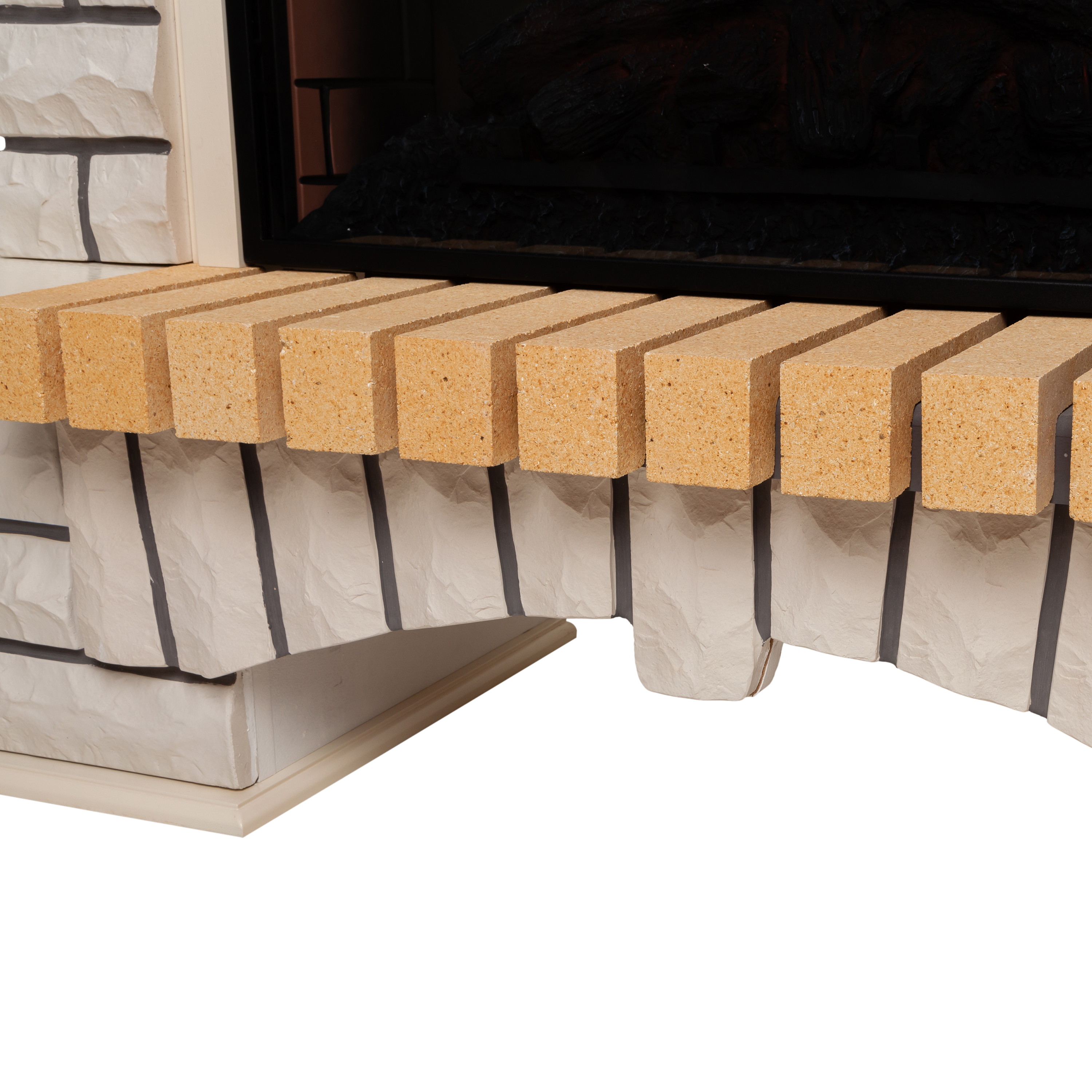 • Изготовлен из искусственного камня и МДФ, покрытого шпоном, - прочного, надежного и стойкого к любым внешним воздействиям материала. Сочетание светлого камня и дерева, декоративная фрезеровка. Дизайн дополнен выемкой для хранения дров в основании обрамления. С массивной каминной полкой.